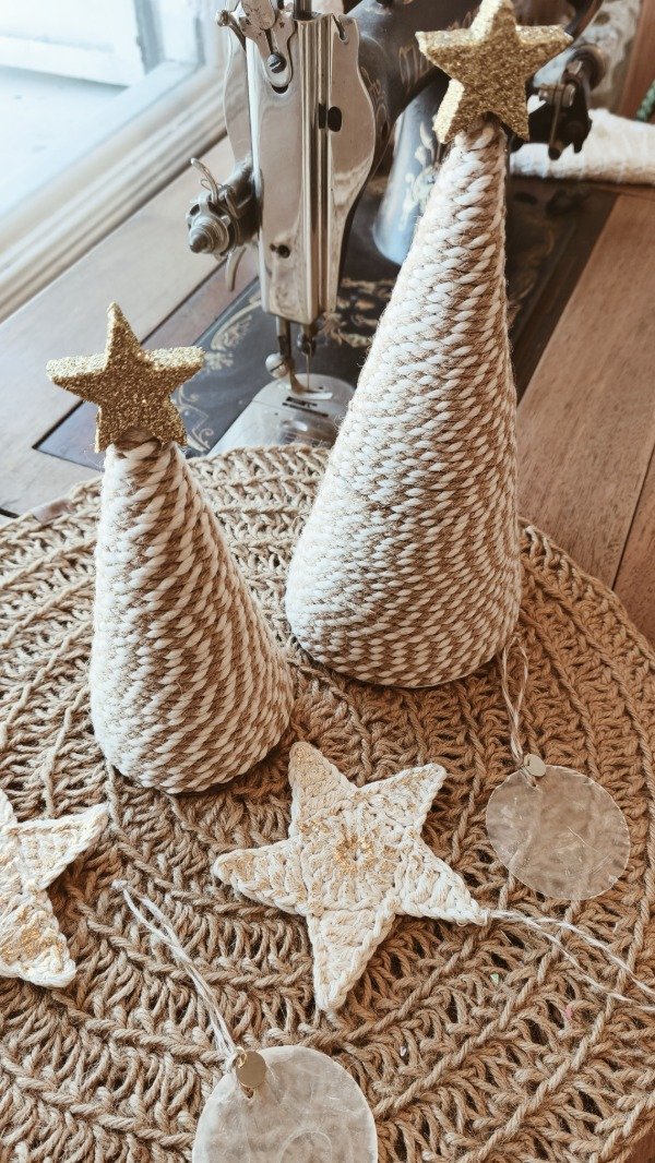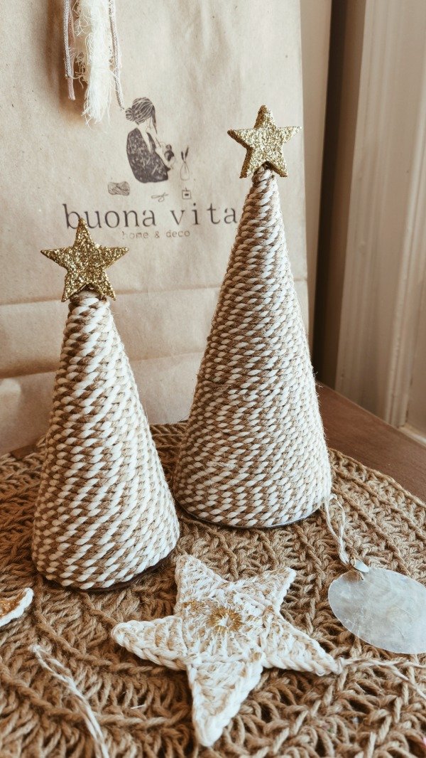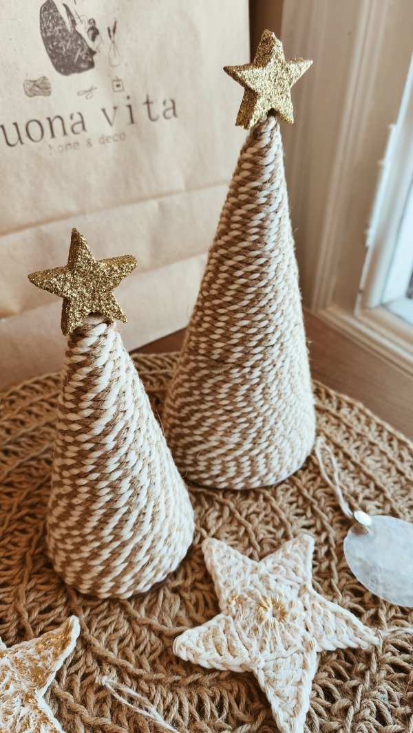 Forrado en hilo de yute y algodón, con estrella dorada en la punta.