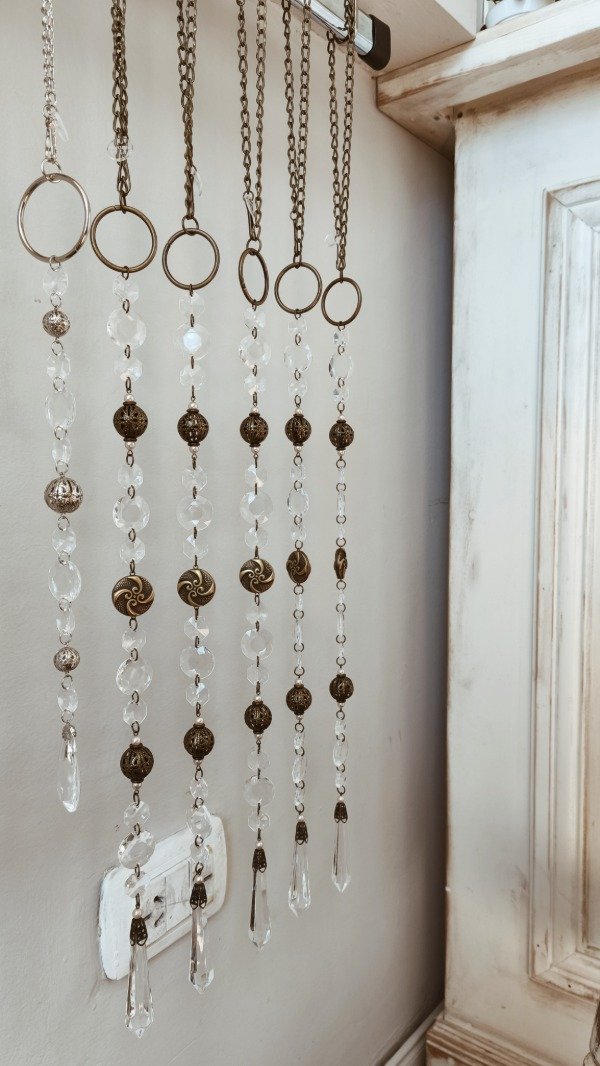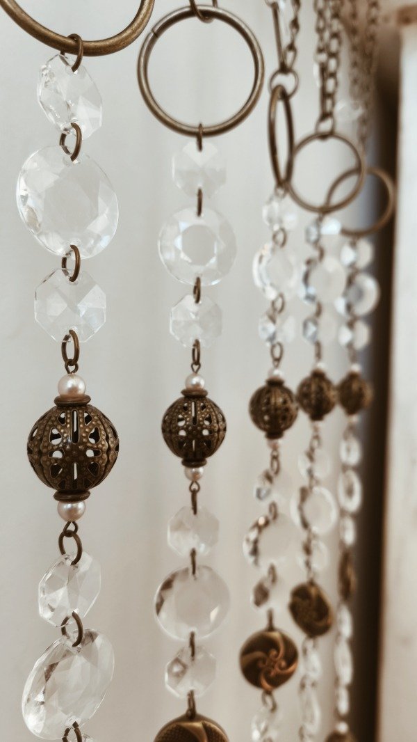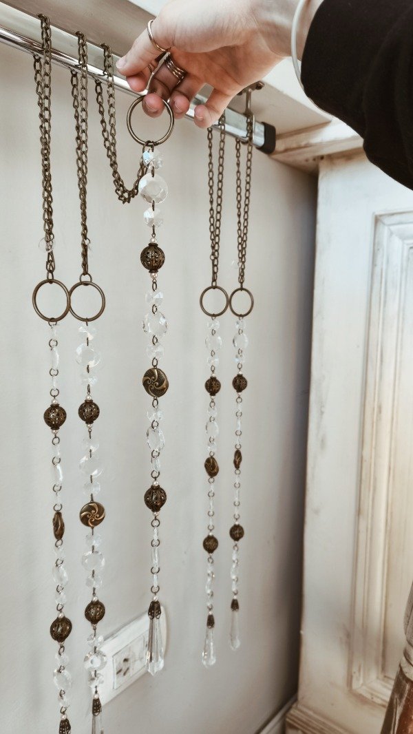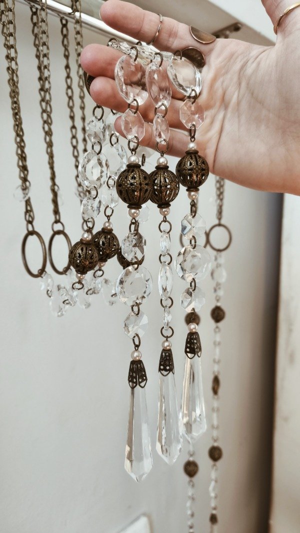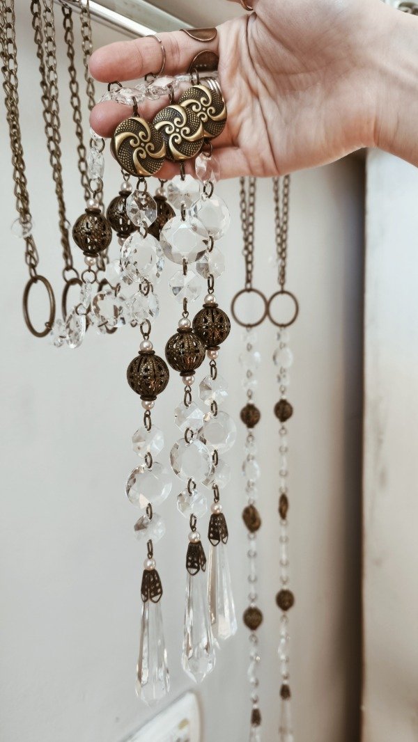 Con cadena color bronce envejecido, filigranas, dijes y los más bellos caireles!